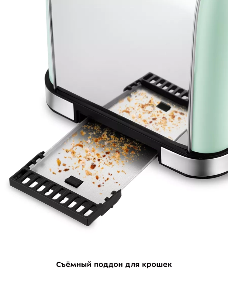 Съемный поддон для крошек позволяет легко и удобно очистить тостер от хлебных крошек.