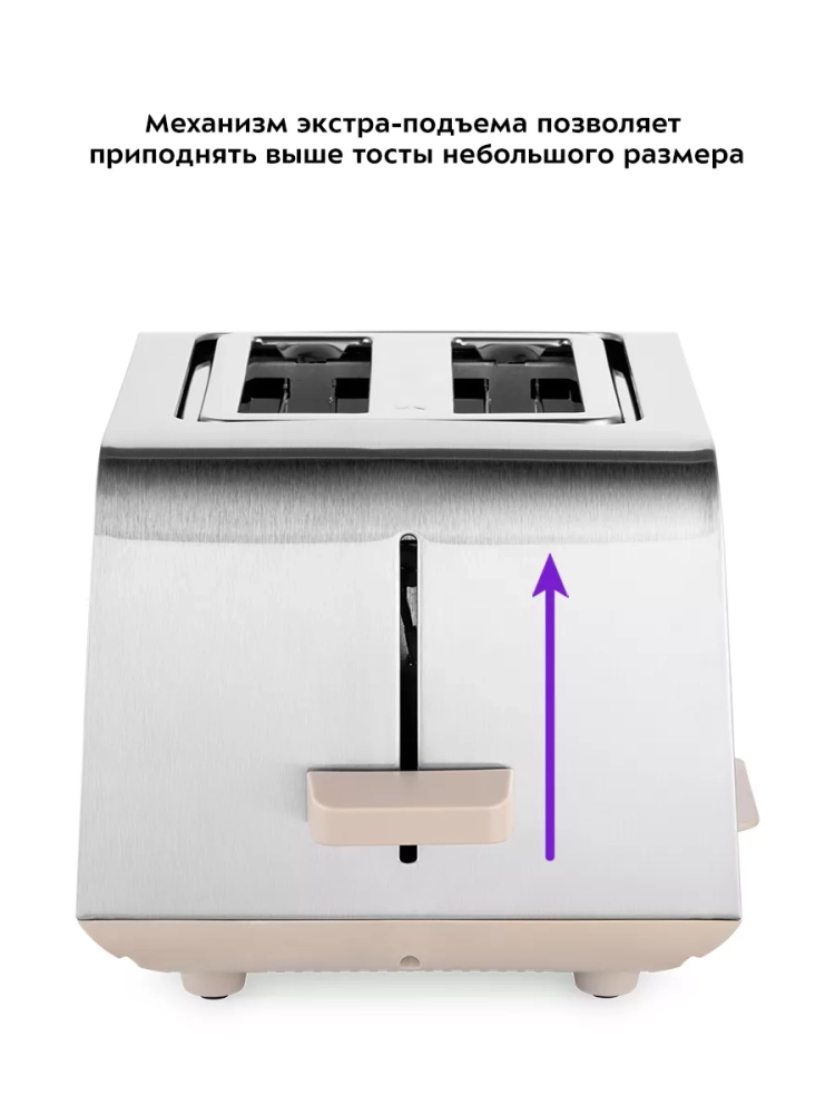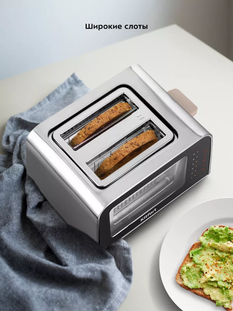 Электрический тостер Kitfort КТ-6060 создан для тех, кто любит полакомиться ароматным и хрустящим горячим поджаренным хлебом. Особый вкус и цвет корочки тостов получаются такими благодаря карамелизации сахара, содержащегося в муке, при инфракрасном нагреве в процессе приготовления. Благодаря стеклянным панелям с двух сторон тостера вы можете наблюдать за процессом приготовления. Тостер оснащен сенсорной панелью управления и может работать в нескольких режимах. Режим «Подогрев» служит для подогрева уже готовых тостов, если они остыли. Режим «Разморозка» позволяет приготовить тосты из замороженного хлеба. Режим «Бейгл» позволяет поджарить внутреннюю часть разрезанного пополам мучного изделия, в то же время внешняя поверхность не пригорит. Загруженные тосты автоматически центрируются, чтобы их обжарка с двух сторон была равномерной независимо от толщины куска. По окончании приготовления тостер автоматически отключается, а тосты поднимаются вверх, чтобы их было удобнее извлечь. Механизм экстра-подъема позволяет приподнять выше тосты небольшого размера для их удобного извлечения. Вы можете приготовить 1 или 2 тоста одновременно. Съемный поддон для крошек позволяет легко и удобно очистить тостер от хлебных крошек. Тостер предназначен для приготовления тостов в домашних условиях и может применяться в квартирах, загородных домах, клиентами в гостиничных номерах, бытовых помещениях магазинов, офисов и т.п. для некоммерческой эксплуатации.