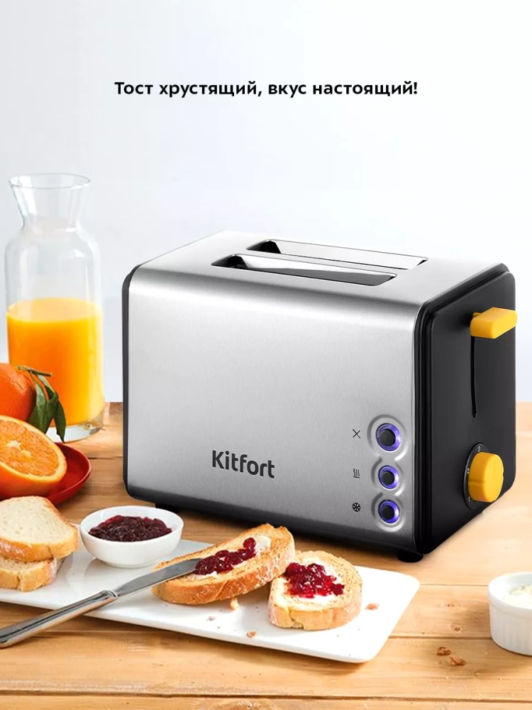 Электрический тостер Kitfort КТ-6203 создан для тех, кто любит полакомиться ароматным и хрустящим горячим поджаренным хлебом. Особый вкус и цвет корочки тостов получаются такими благодаря карамелизации сахара, содержащегося в муке, при инфракрасном нагреве в процессе приготовления.