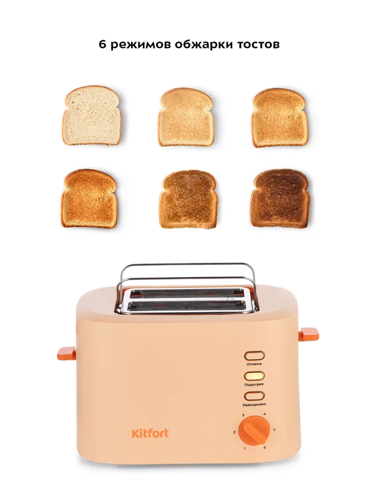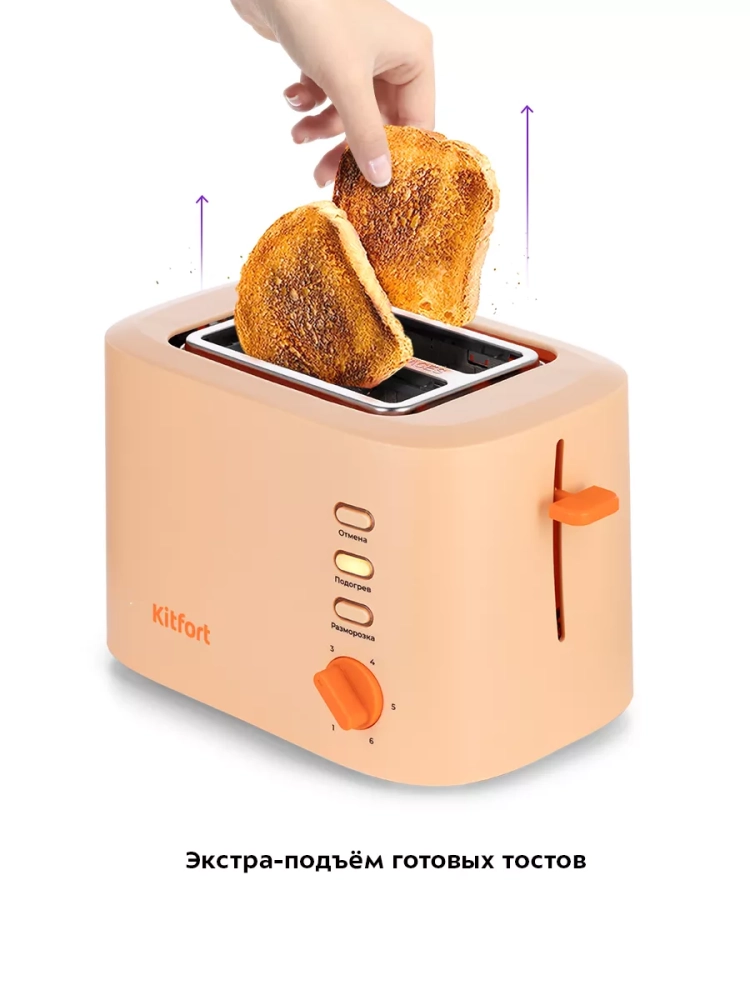 Тостер Kitfort КТ-6214 создан для тех, кто любит полакомиться ароматным и хрустящим горячим поджаренным хлебом. Особый вкус и цвет корочки тостов получаются такими благодаря карамелизации сахара, содержащегося в муке, при инфракрасном нагреве в процессе приготовления.