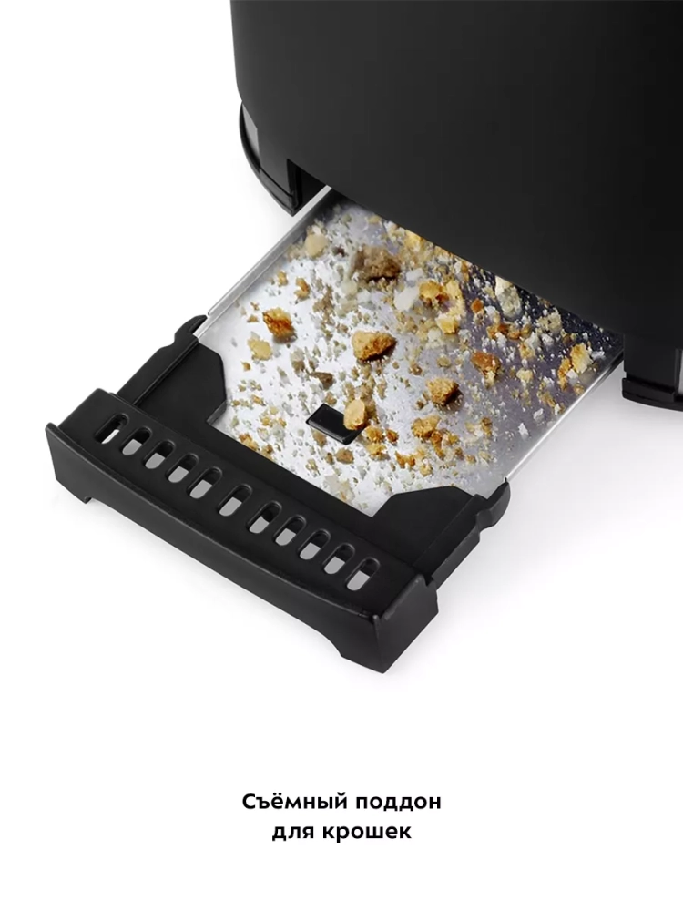 Съемный поддон для крошек позволяет легко и удобно очистить тостер от хлебных крошек.