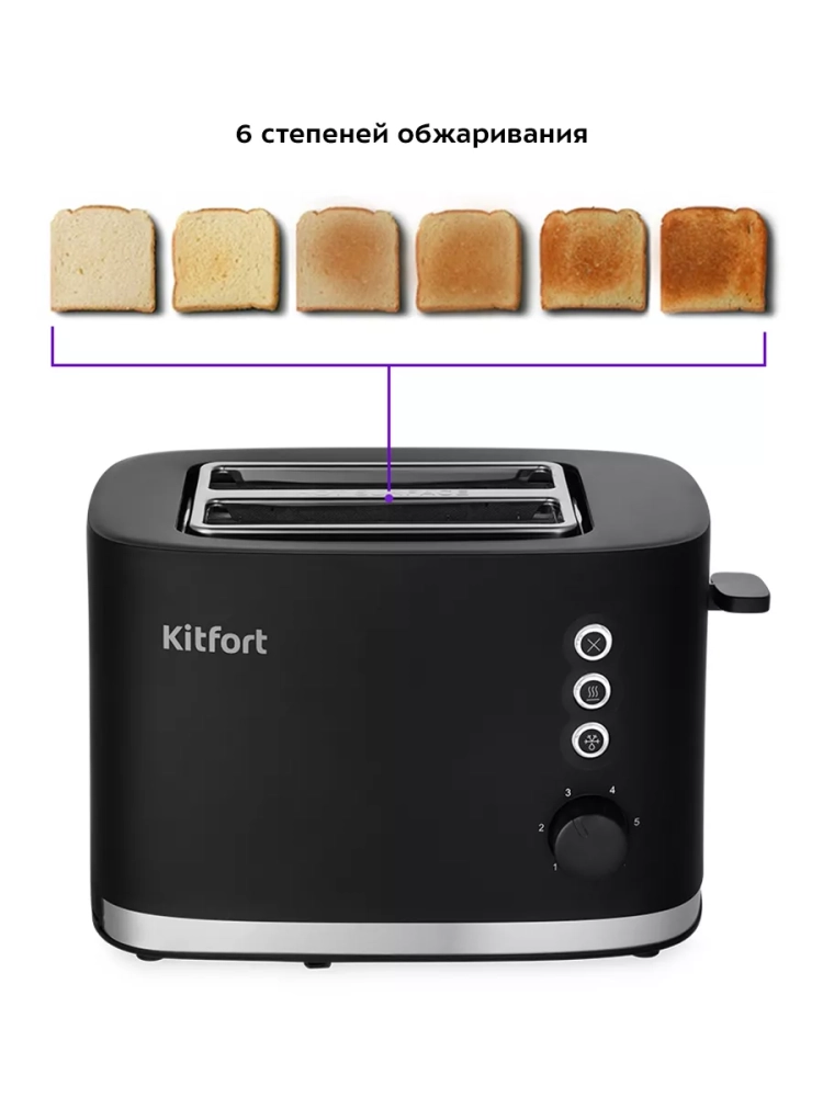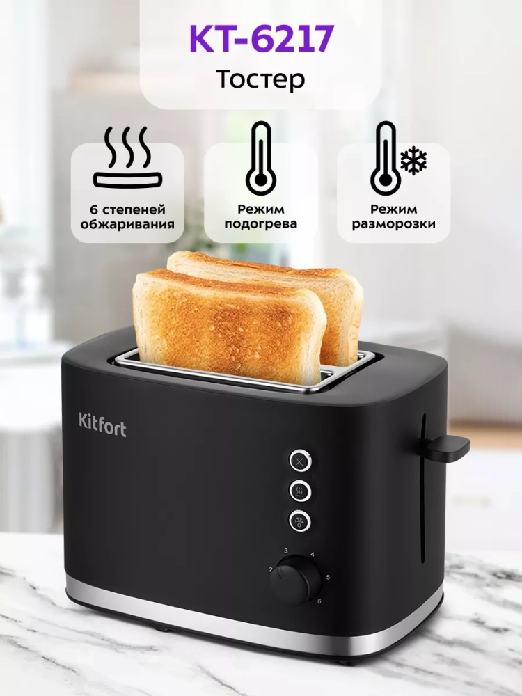 Электрический тостер Kitfort КТ-6217 создан для тех, кто любит полакомиться ароматным и хрустящим горячим поджаренным хлебом. Особый вкус и цвет корочки тостов получаются такими благодаря карамелизации сахара, содержащегося в муке, при инфракрасном нагреве в процессе приготовления.