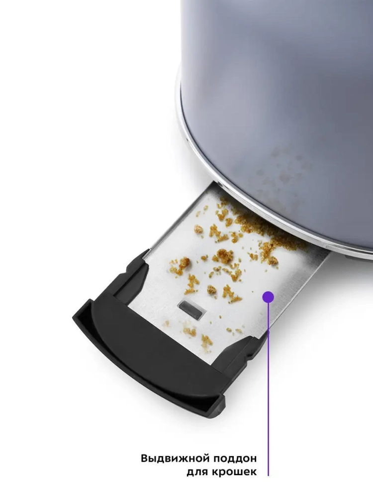 Снизу расположен выдвижной поддон для крошек, поэтому чистить тостер просто и удобно.