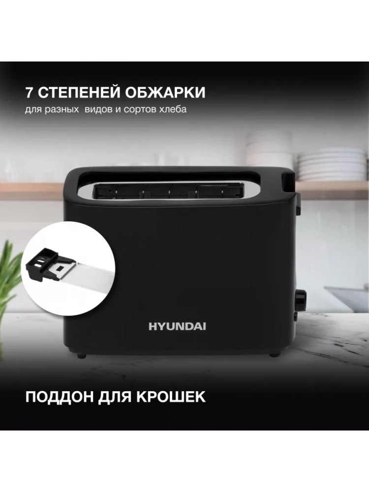 Тостер Hyundai HYT-8007 черный, мощность 500Вт, количество отделений: 1.