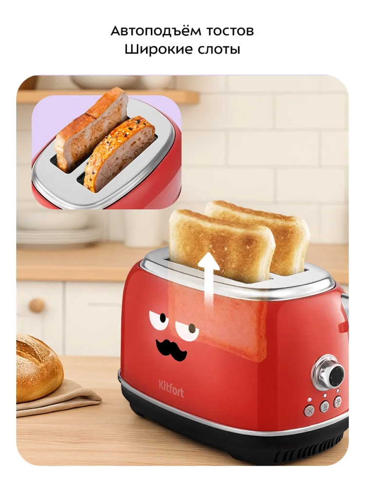 Электрический тостер Kitfort КТ-6457 создан для тех, кто любит полакомиться ароматным и хрустящим поджаренным хлебом. Особый вкус и цвет корочки тостов получаются такими благодаря карамелизации сахара, содержащегося в муке, при инфракрасном нагреве в процессе приготовления.
