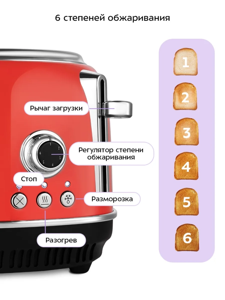 Количество степеней обжаривания тостов: 6.