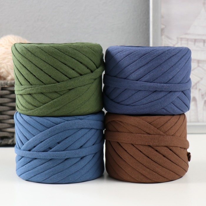 Трикотажная пряжа набор №12,4х30 м/100 гр,ширина 7-9 мм (серо-голуб,джинс,олива,свет олива)