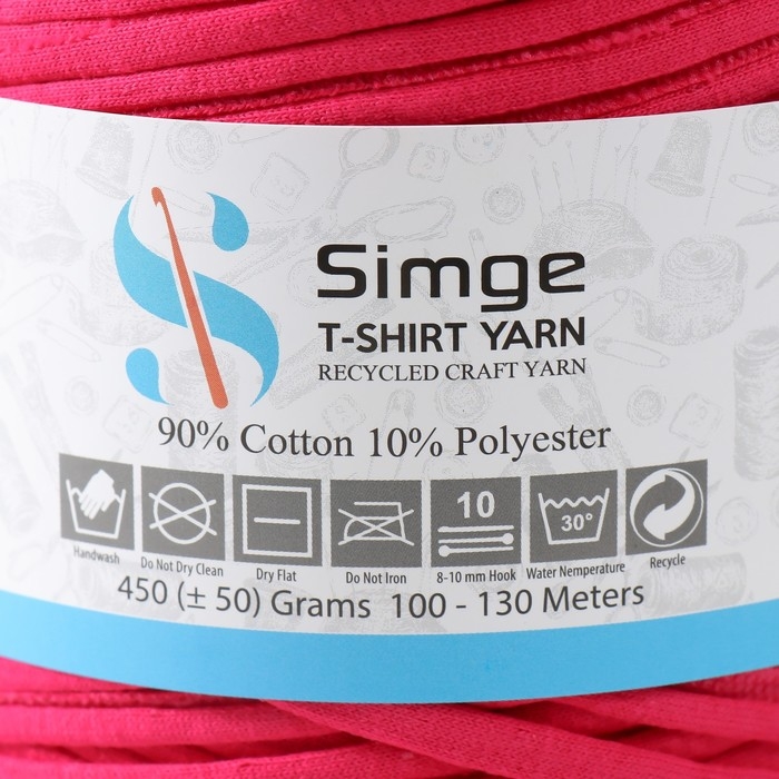 Трикотажная пряжа вторичная 90% хлопок,10% п/э, 100м/450±50 гр (фуксия) МИКС