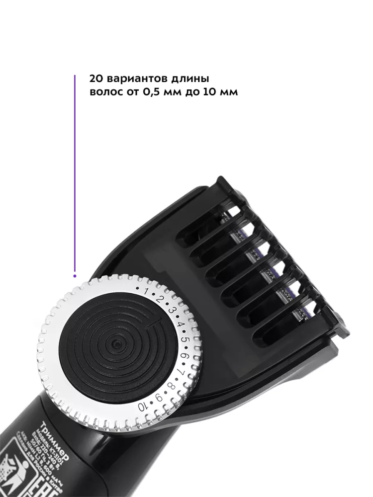 С помощью гребня с регулятором длины вы можете установить длину волос до 10 мм с точностью 0,5 мм.