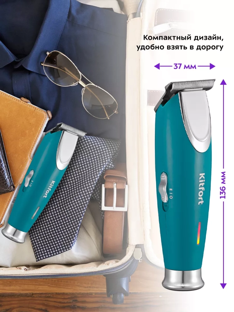 Триммер Kitfort KT-3110 — это прибор для бритья, стрижки и подравнивания бороды, усов или баков. Лезвия из нержавеющей стали обеспечивают качественное и тщательное удаление волос. Корпус триммера Китфорт не намного больше обычного бритвенного станка, что в сочетании с длительным временем работы позволяет брать его с собой в командировки, походы и путешествия. С помощью 4 съемных гребней вы можете выбрать подравнивание длины волос до 1, 1,5, 2 или 3 мм. В комплекте к триммеру идет щетка для чистки лезвий. С ее помощью вы можете с легкостью ухаживать за триммером и поддерживать его в чистоте и исправном состоянии.