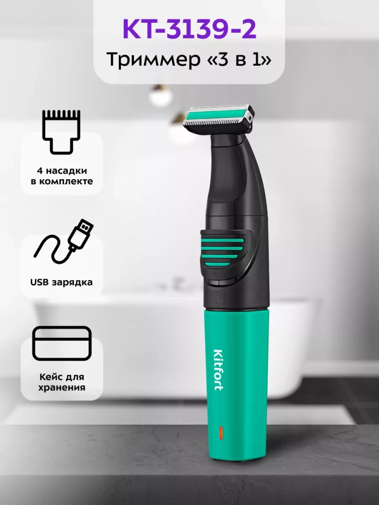 Триммер «3 в 1» Kitfort KT-3139 — это прибор для бритья, подравнивания и стрижки бороды, усов или бакенбард, а также для стрижки волос в носу и ушах.