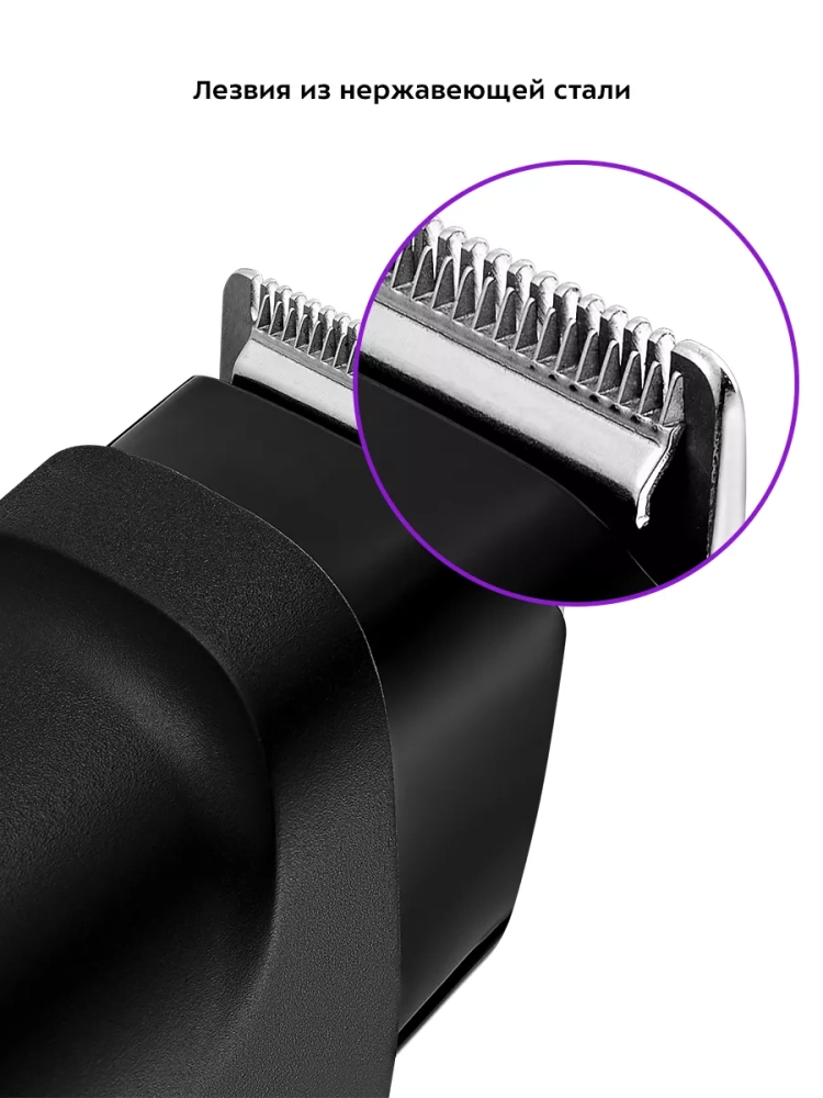 Триммер очень прост в использовании — управление устройством осуществляется единственной кнопкой на корпусе. Лезвия сменных насадок из нержавеющей стали обеспечивают качественное и тщательное удаление волос. Корпус триммера компактен, что в сочетании с длительным временем работы позволяет брать его с собой в командировки, походы и путешествия.