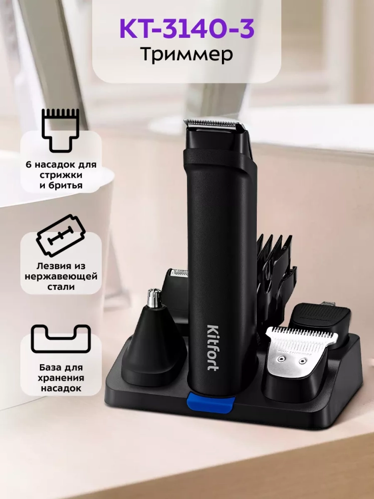 Триммер «4 в 1» Kitfort KT-3140 — это прибор для бритья, стрижки, подравнивания бороды, усов или бакенбард, а также для стрижки волос в носу и ушах.