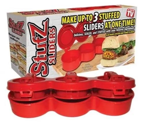 Если Вы не вегетарианец, то наверняка, любите полакомиться домашними котлетками. Однако, их приготовление не всегда получается быстрым, да и нервы нужны стальные, чтобы их форма была идеальна. Порой даже опытная хозяйка или кулинар недоумевает, почему же в результате жарки биточек разваливается. Представляем Вашему вниманию пресс для приготовления котлет с начинкой STUFZ SLIDERS! Изделие изготовлено из пищевого пластика. Материал экологически нейтрален, не выделяет опасных для вашего здоровья веществ и не вступает в химическую реакцию с продуктами питания. Прослужит Вам долгий срок службы! Приспособление состоит из трёх небольших контейнеров, которые имеют три отсека. Замесите мясной или рыбный фарш. Выложите его на дно и закрыв крышку спрессуйте содержимое, нажимая на пресс. После чего откройте и начните выкладывать начинку, которую предварительно подготовили. Здесь Вы можете использовать всё что угодно, на свой вкус. Верхнюю часть следует так же заполнить фаршем и закрыв, запрессовать. Ну вот и всё, Вам остаётся только извлечь фаршированный полуфабрикат.