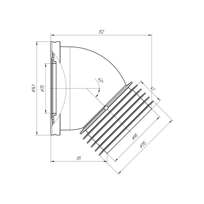 - Диаметр отвода: 115 мм.