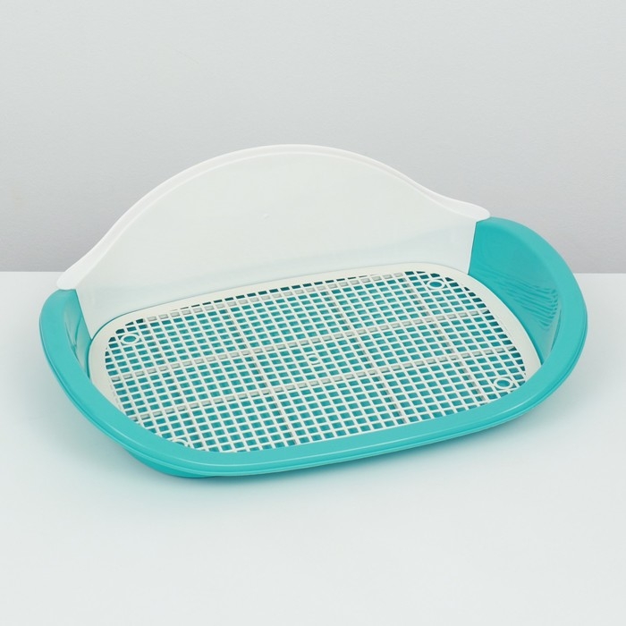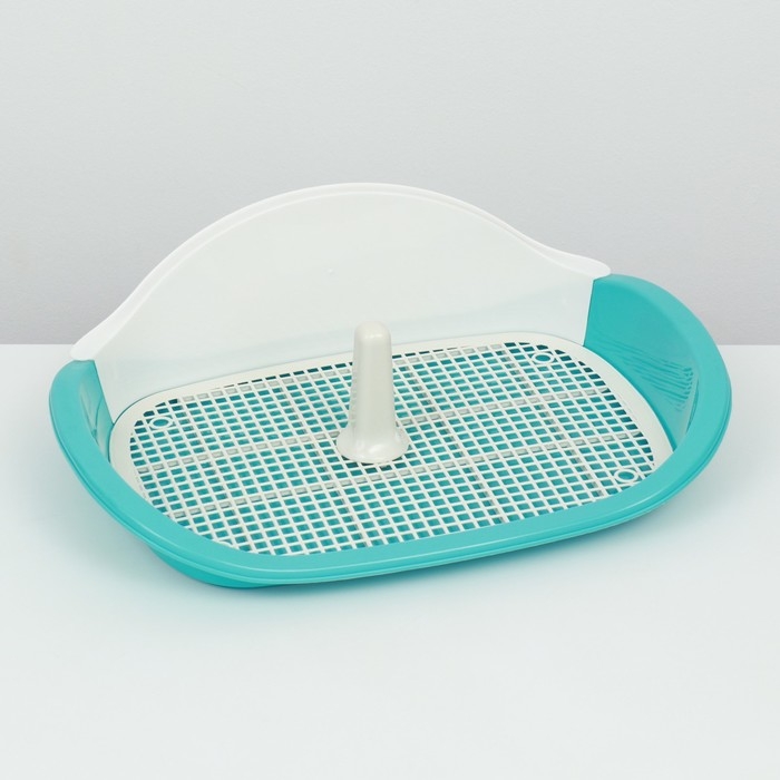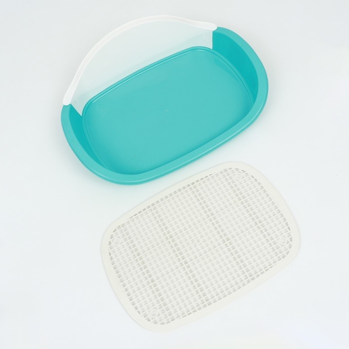 Туалет для собак 46,5 х 35,5 х 5,5 см, со съёмным бортом, решеткой и столбиком, голубой