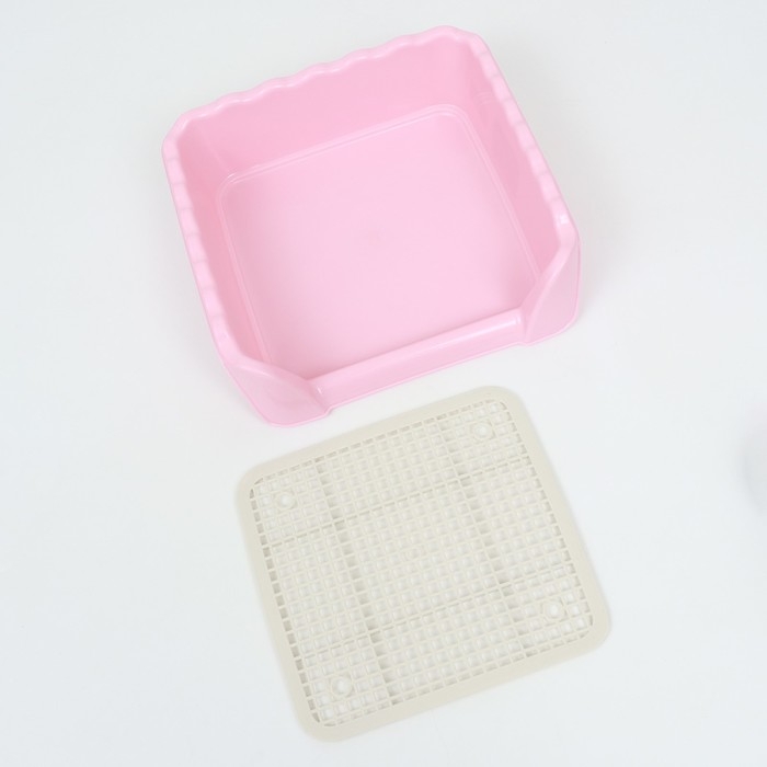 Туалет для собак с высокими бортами и съемной сеткой 38х36х12 см, розовый