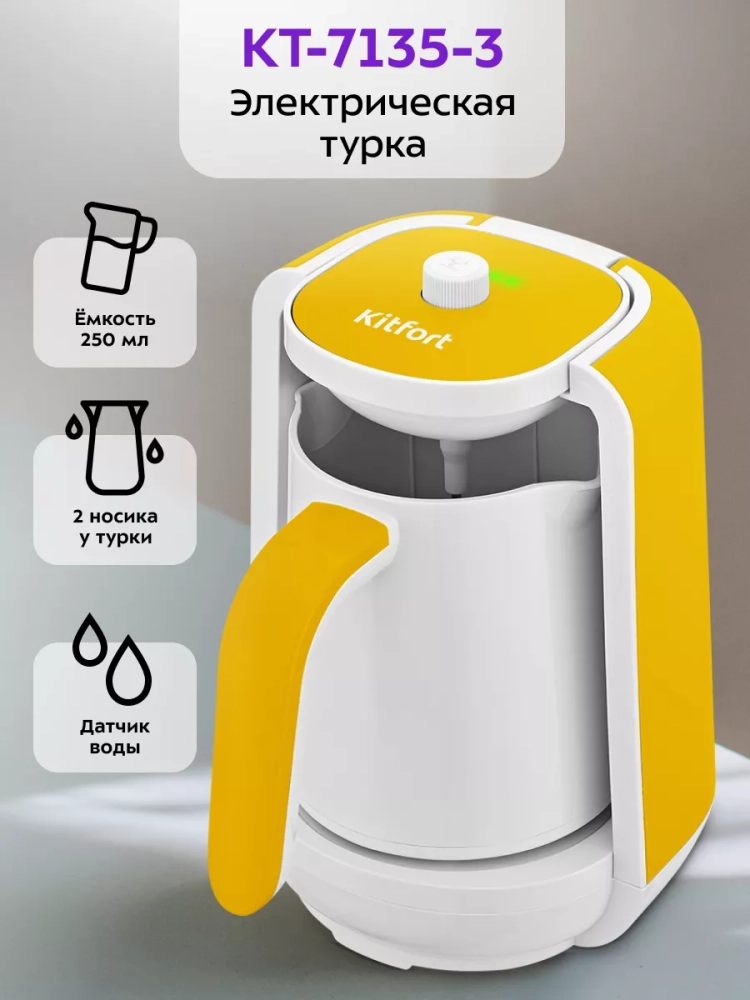 Электрическая турка для кофе — это незаменимый предмет на вашей кухне, который сочетает в себе удобство и стиль. Модель КТ-7135 мощностью 400-480 Вт от Kitfort представляет собой современное решение для любителей кофе. Электрическая турка позволяет быстро и легко приготовить ароматный кофе, сохраняя традиции турецкой варки. Электротурка оснащена эргономичной пластиковой ручкой, обеспечивающей комфортное использование и безопасность. Электрическая кофеварка Kitfort — это не просто техника, а настоящий помощник на вашей кухне. Благодаря автоматическому отключению, вы можете быть уверены в безопасности использования. Электротехника такого уровня делает процесс приготовления кофе простым и приятным. Турка выполнена из высококачественных материалов, нержавеющая сталь гарантирует долговечность и надежность. Электрическая джезва идеально подходит для приготовления кофе на 2-3 чашки, что делает её отличным выбором для небольшой компании. Пластиковая конструкция и современный дизайн позволяют ей гармонично вписаться в интерьер любой кухни. Электрокофеварки Kitfort — это сочетание инноваций и традиций, что делает их незаменимыми в современном быту. Электротурка оснащена системой защиты от перегрева, что обеспечивает долгий срок службы устройства. Турецкие традиции приготовления кофе теперь доступны каждому благодаря этой уникальной кухонной технике. Электрическая турка — это не просто прибор с автоотключением, а часть вашего утреннего ритуала, который дарит бодрость и хорошее настроение на весь день. Электрические миничайники и турки становятся все более популярными благодаря своей функциональности и удобству. Электроприбор Kitfort — это выбор тех, кто ценит качество и надежность. С помощью этой техники вы сможете наслаждаться вкусом настоящего турецкого кофе, не выходя из дома. Электрическая турка китфорт для кофе — это идеальное решение для тех, кто ценит время и комфорт.
