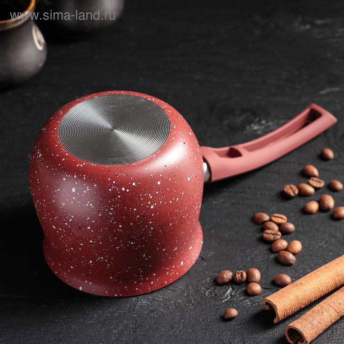 Турка Доляна «Мрамор рэд», 500 мл, d=9 см, 19,5×9×14 см, пластиковая ручка, антипригарное покрытие, индукция, цвет красный