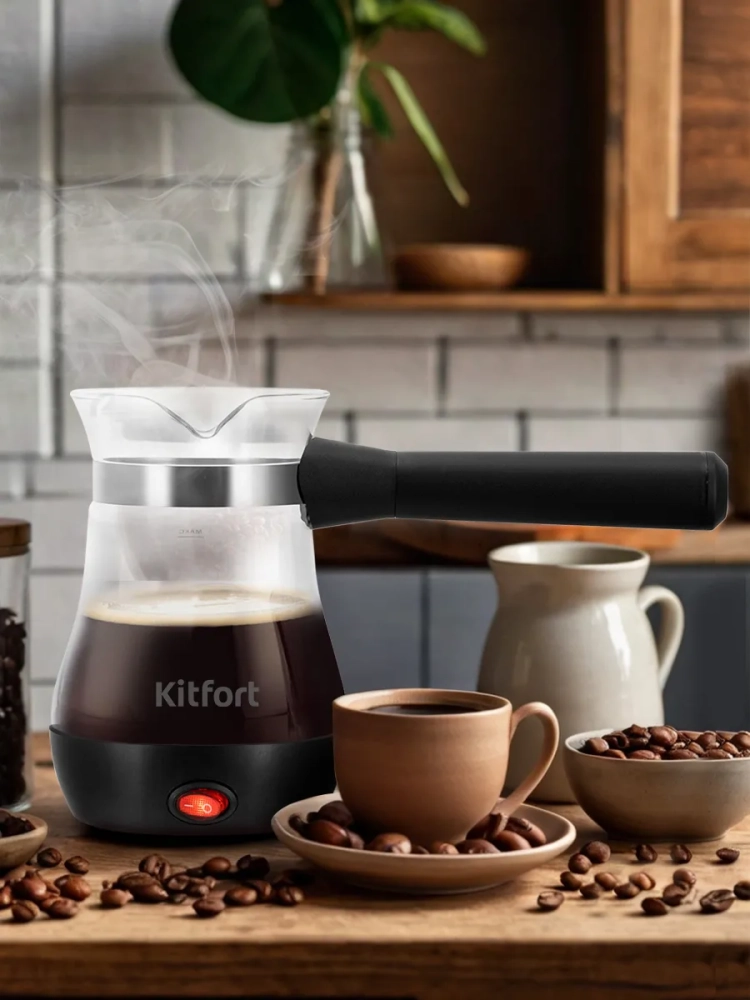 Электрическая турка Kitfort КТ-7452 варит кофе по-турецки. С ней вы сможете быстро и легко сварить натуральный кофе на 8 чашек по 60 мл.