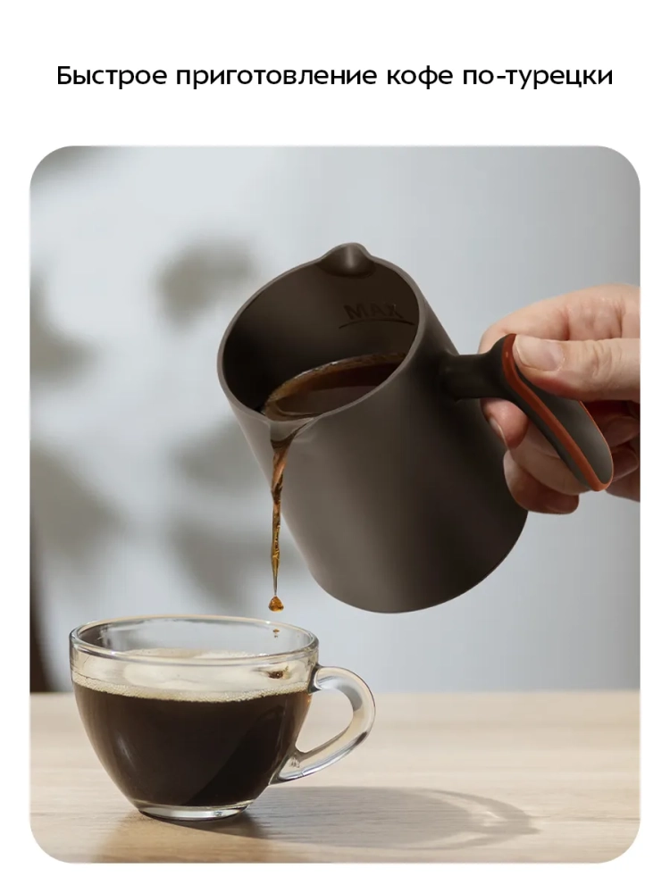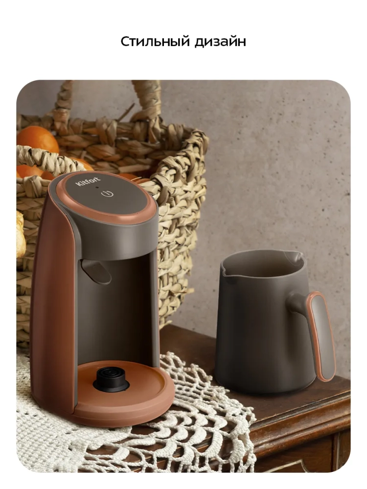 Электрическая турка Kitfort КТ-7456 варит кофе по-турецки. С ней вы сможете быстро и легко сварить натуральный кофе на 4 чашки по 60 мл.