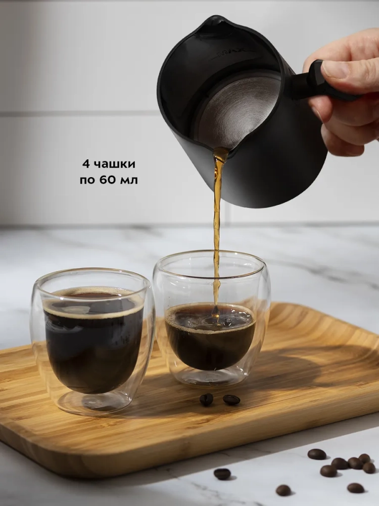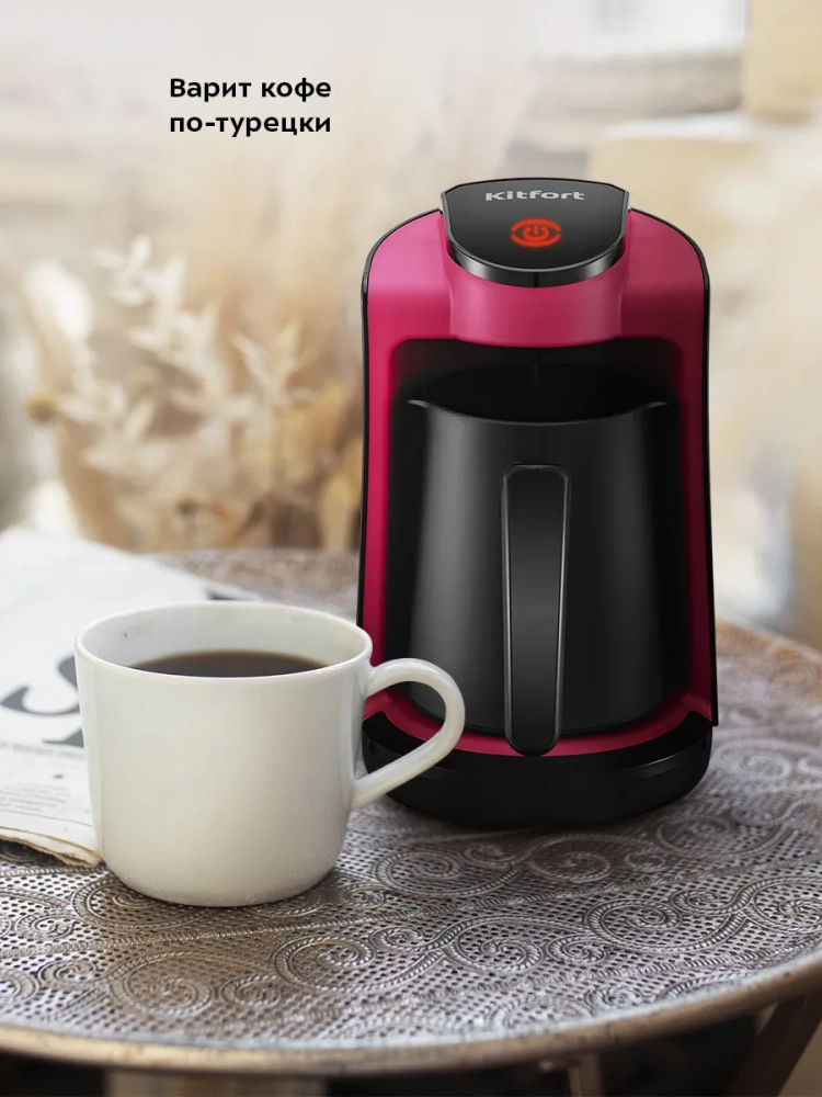 Электрическая турка Kitfort КТ-7494 варит кофе по-турецки. С ней вы сможете быстро и легко сварить натуральный кофе на 4 чашки по 60 мл.