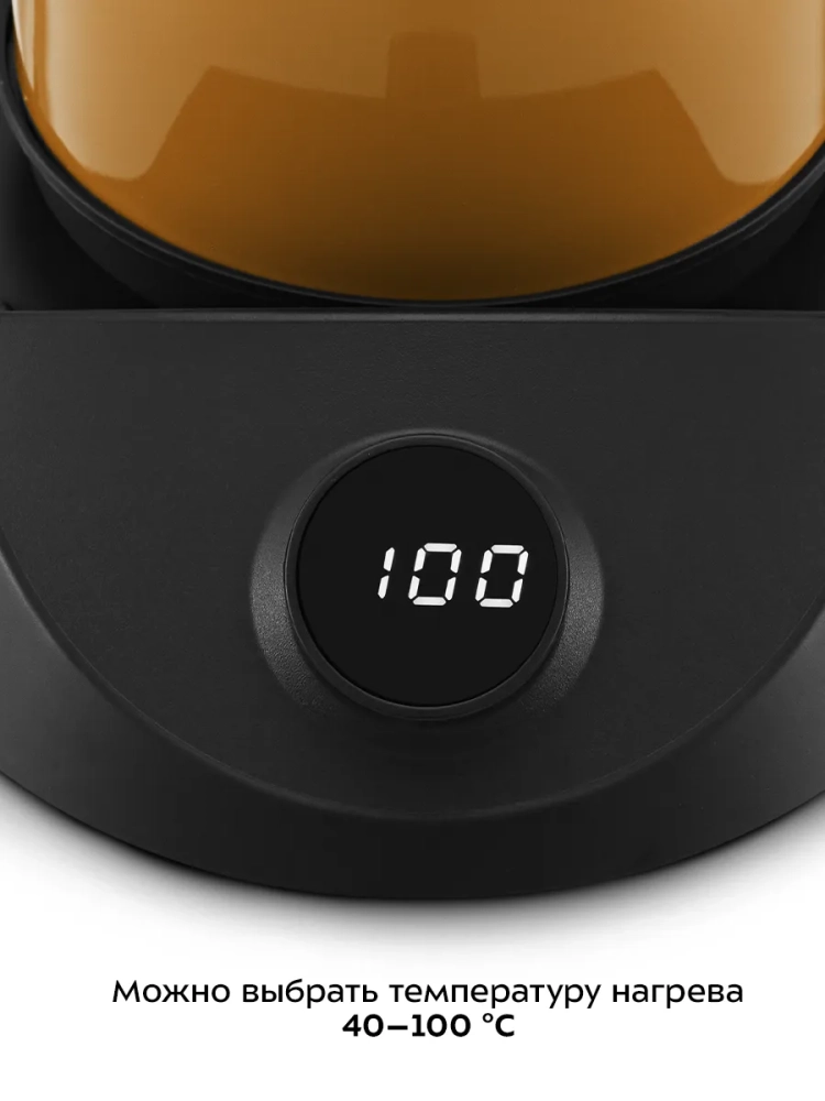 В турке KT-7498 вы можете выбрать температуру нагрева 40–100 °C с шагом 1 °C. После включения нагрева на дисплее будет отображаться текущая температура воды в турке. Устройство автоматически будет поддерживать выбранную температуру в течение 1 часа.