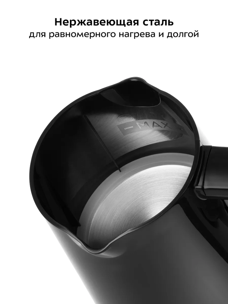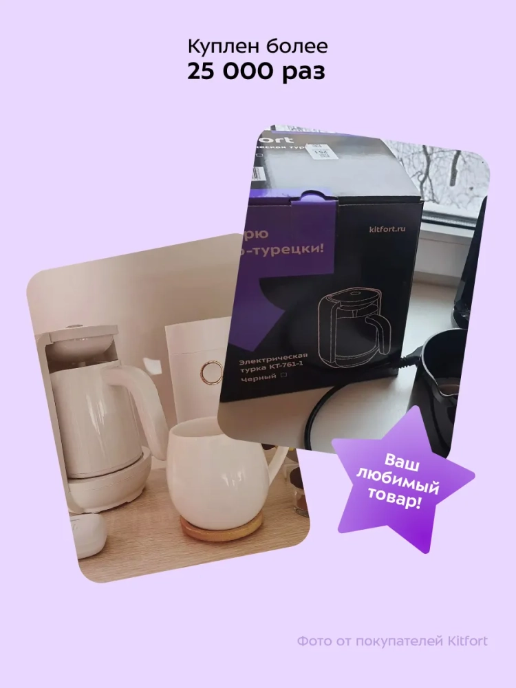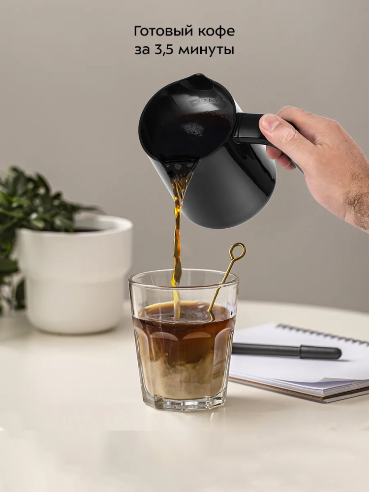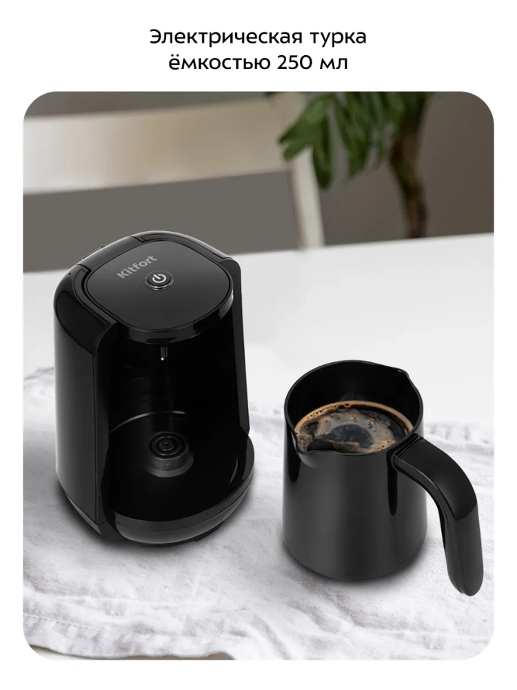 Электрическая турка для кофе Kitfort КТ-761 – это идеальный выбор для тех, кто ценит традиционный вкус кофе по-турецки. Этот электроприбор позволяет быстро и без усилий приготовить ароматный напиток на 4 чашки по 60 мл каждая. Процесс варки полностью автоматизирован: функция автоотключения срабатывает через 3,5 минуты после закипания или раньше, если пенка коснется датчика воды. Это исключает риск перекипания и убегания напитка. Идеальный подарок на любой случай: на Новый год, 23 февраля, 8 марта, день рождения, свадьбу или юбилей! Кофеварка Kitfort КТ-761 предназначена для приготовления кофе по-восточному из мелко молотых зерен в воде. В процессе варки вода с молотым кофе доводится до кипения, после чего джезву необходимо снять с огня. Однако благодаря автоматизации процесса в данной модели вам не придется следить за этим вручную. Эта электрическая кофеварка отличается компактностью и удобством использования, что делает её отличным выбором как для дома, так и для офиса, а сталь делает прочным помощником. Она обеспечивает равномерное нагревание воды и поддерживает оптимальную температуру варки на протяжении всего процесса приготовления. Благодаря стильному дизайну эта электрокофеварка станет украшением любой кухни или рабочего пространства. Электротурка проста в уходе: достаточно промыть её водой после использования. Kitfort КТ-761 – это не просто устройство для варки кофе; это ваш надежный помощник в создании ароматного напитка каждый день! Независимо от того, предпочитаете ли вы крепкий эспрессо или мягкий латте – эта мини модель удовлетворит любые ваши предпочтения.