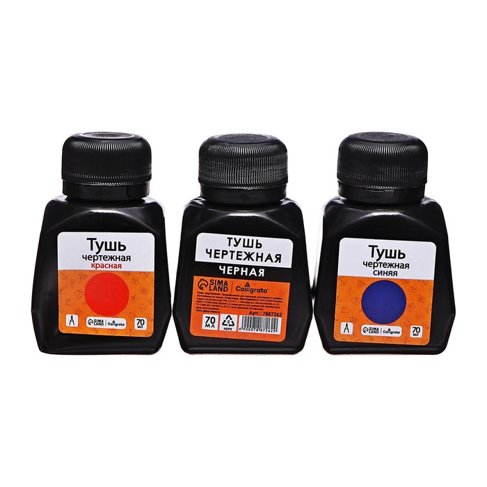 Тушь жидкая чертежная Calligrata 70 мл НАБОР 3 ЦВЕТА (красный, синий, черный)