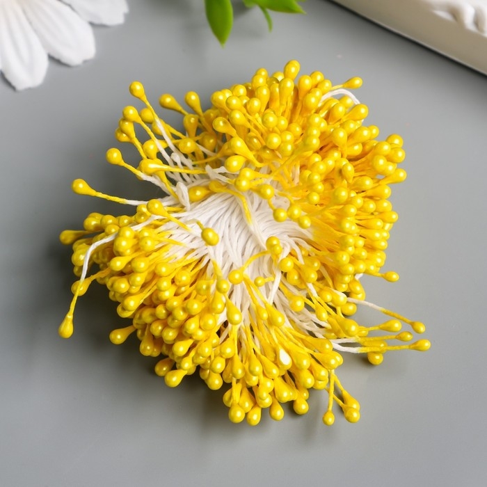 Тычинки для цветов "Капельки глянец ярко-жёлтые" набор 300 шт длина 6 см