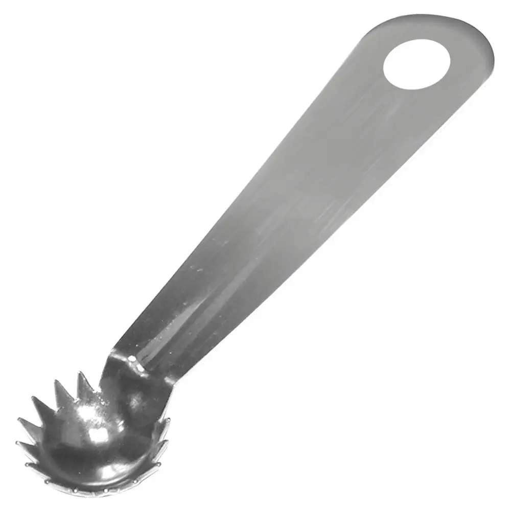 Сердцевина томатов и клубники бывает жесткой и портит вкус блюда или консервов. Удалитель сердцевины актуален как при готовке обычных блюд, так и при обработке большого объема продуктов, например, во время консервирования. Воткните приспособление внутрь плода зубцами вниз и аккуратно проверните. Выньте сердцевину и приступайте к чистке следующего овоща или фрукта. Изготовлено: из коррозионностойкой (нержавеющей) стали.