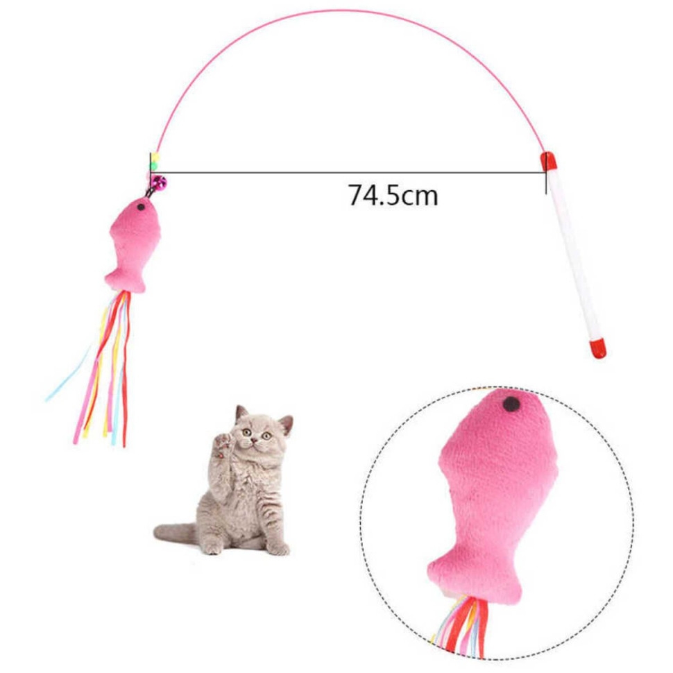 Удочка дразнилка для кошек металлическая с мягкой рыбкой