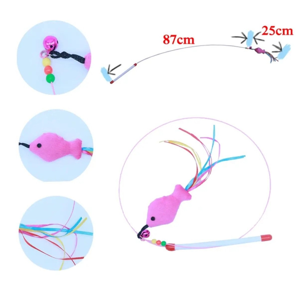 Игрушка дразнилка не только приносит радость вашему питомцу, но и является отличным способом укрепления физической активности. Регулярные игры с удочкой помогают предотвратить появление лишнего веса и сохранить здоровье вашего любимца. Кошки — естественные хищники, и эта дразнилка позволит реализовать их инстинкты, побуждая к активным действиям и развитию ловкости. Кроме того, время, проведенное вместе с питомцем за игрой, сплачивает вас и вашего кота. Устанавливая доверительные отношения, вы формируете более крепкую эмоциональную связь, что положительно влияет на поведение животного и его настроение. Играя с дразнилкой, можно не только развлекать кошку, но и обучать ее новым трюкам, способствуя интеллектуальному развитию. Эта интерактивная игрушка станет незаменимой частью досуга вашего пушистого друга, принося радость не только ему, но и вам. Устройство легко очищается и хранится, а разнообразие активностей, которые она предлагает, позволит избежать однообразия в играх. Поддерживайте активный образ жизни вашего питомца с помощью яркой и вызывающей интерес удочки! Удочка дразнилка для кошек, металлическая с мягкой рыбкой.