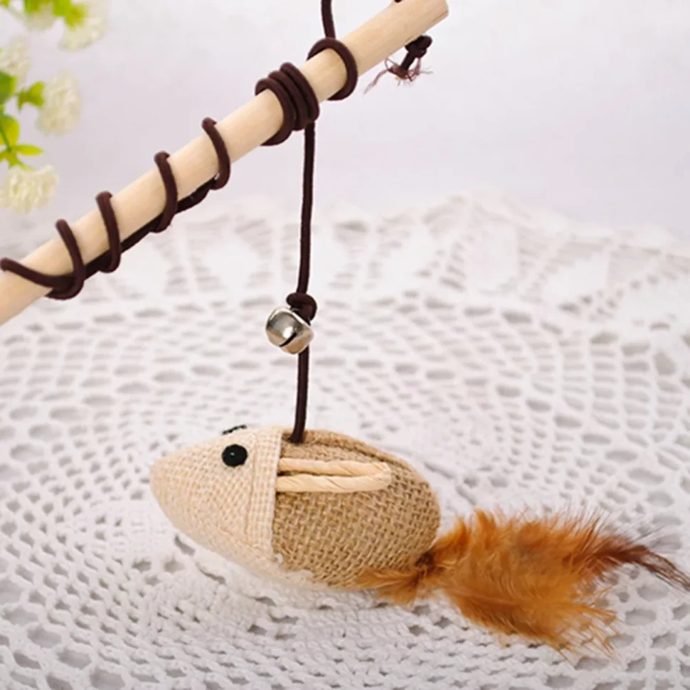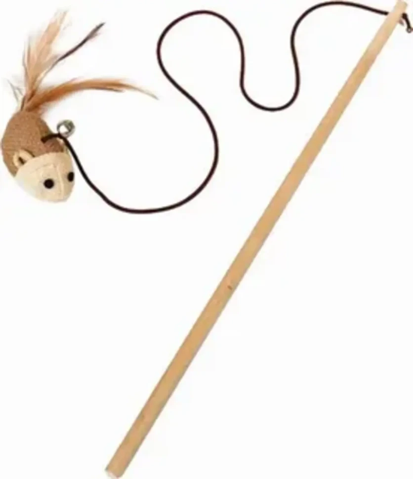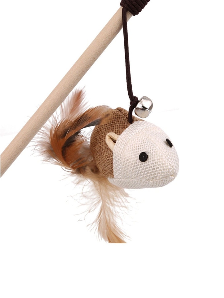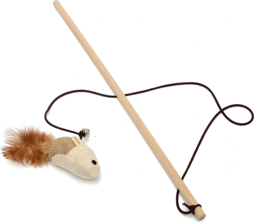 Удочка дразнилка (деревянная) с мышкой и колокольчиком для кошек, котиков и котят. Красочная и звонящая удочка дразнилка - отличная приманка для всех пород кошек. Быстро привлечет внимание кошки пробудив в ней чувство "охоты", т.к. имеет мышку с перьями и маленький звонящий колокольчик на конце удочки. Дразнилка поможет вашему любимцу оставаться всегда в прекрасной форме и отличном настроение, а также поможет наладить более высокое доверие и крепкую дружбу между хозяином и животным. Отличное решение для полных кошек, которым особенно нужно движение, чтобы сохранить здоровье и ловкость. Котятам, более зрелым котам и кошкам, она поможет развить физическую активность, проворство, высвободить лишнюю энергию для здорового и крепкого сна. Ручка удочки-дразнилки выполнена из натурального дерева, а хвост мышки из натуральных перьев. Сам материал мыши достаточно прочный, что позволяет вашему любимцу долгое время играть с ней. Удочку удобно хранить или свободно переносить или перевозить, если ваша кошка уезжает с вами в увлекательное путешествие. Удочка выполнена из натуральных материалов таких как дерево и перо, не токсична для животных. Удочка дразнилка для кошек деревянная из натуральных материалов.
