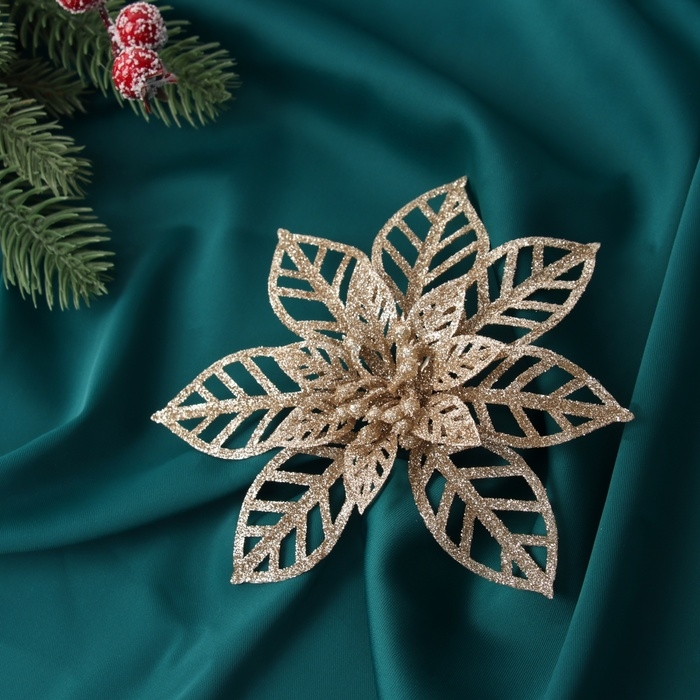 Украшение ёлочное "Цветы резные блеск" (набор 2 шт) на зажимах, 13х13 см, золото