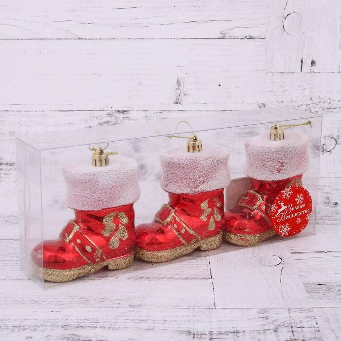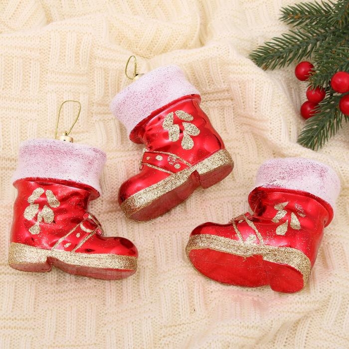 Украшение ёлочное "Сапожок" (набор 3 шт) 8х4х8 см, красный
