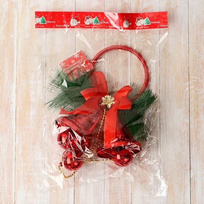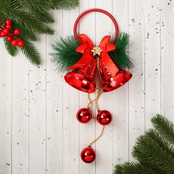 Украшение новогоднее "Уютная сказка" кольцо колокольчики шарики, 16х39 см, красный
