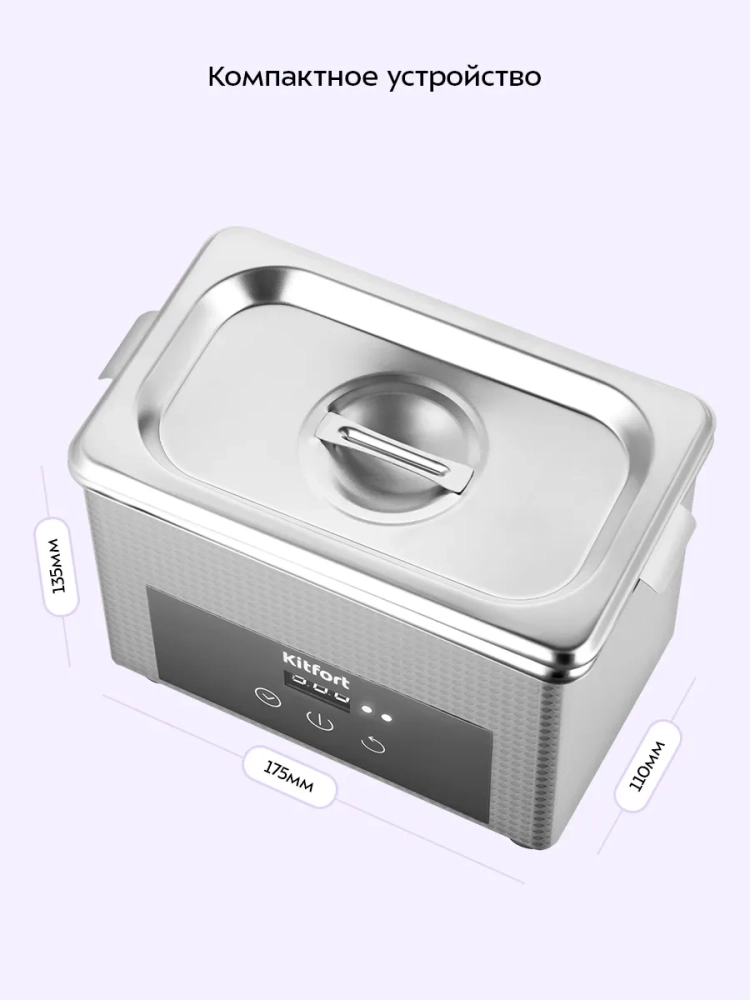 Ультразвуковая мойка Kitfort КТ-6451 поможет эффективно очистить небольшие изделия из металла, пластика и стекла. Ультразвуковая очистка — способ очистки поверхности твёрдых тел в жидкости, при котором в жидкость вводятся ультразвуковые колебания. Применение ультразвука значительно ускоряет процесс очистки и повышает качество очистки. В качестве жидкости в ультразвуковой мойке можно использовать воду, а также специальные чистящие или дезинфицирующие растворы.