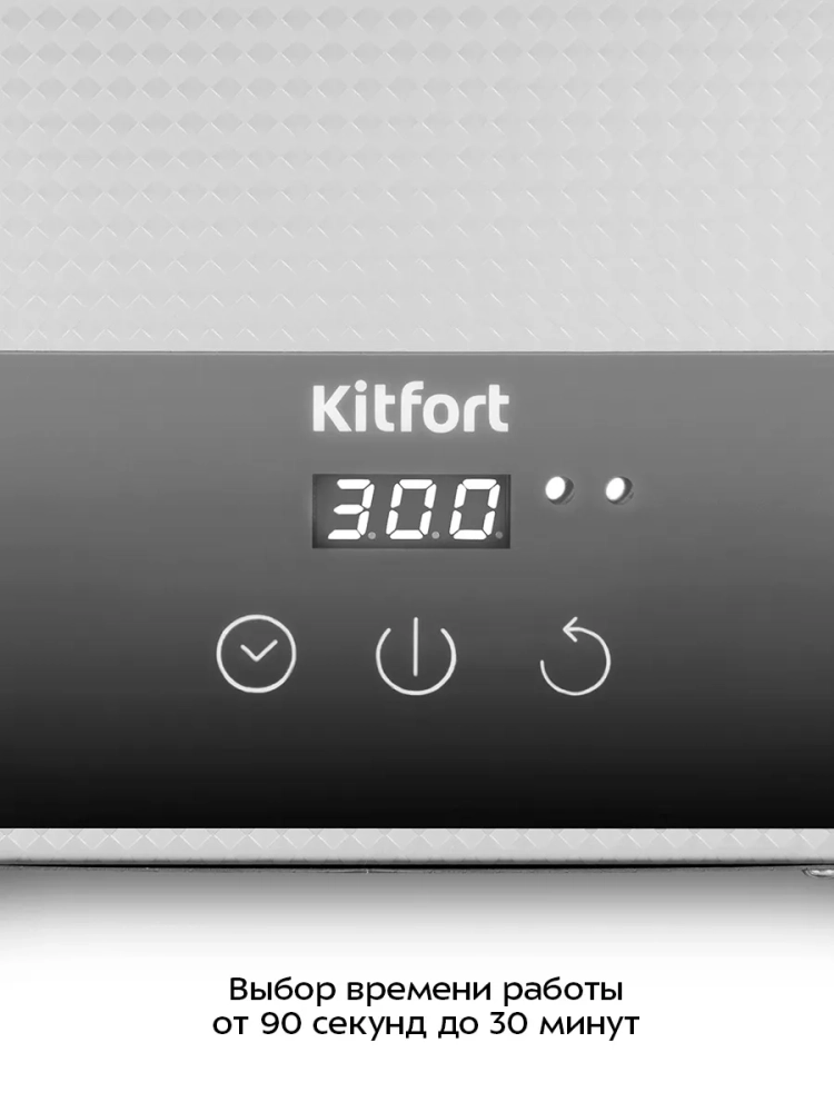 Управление прибором осуществляется при помощи трех кнопок на панели управления. Вы можете выбрать время работы 90–360 секунд с шагом 30 секунд, 540, 720, 900 секунд, 18–30 минут с шагом 3 минуты. По прошествии установленного времени мойка автоматически отключается. Во время работы на дисплее отображается оставшееся время работы.
