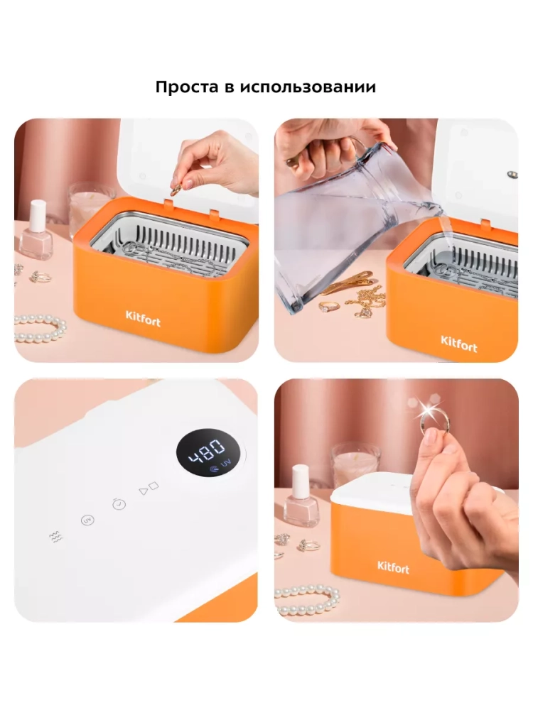 Ультразвуковая мойка Kitfort КТ-6069 поможет эффективно очистить и продезинфицировать небольшие изделия из металла, пластика и стекла. Ультразвуковая очистка — способ очистки поверхности твёрдых тел в жидкости, при котором в жидкость вводятся ультразвуковые колебания. Применение ультразвука значительно ускоряет процесс очистки и повышает ее качество. В качестве жидкости в ультразвуковой мойке можно использовать воду, а также чистящие или дезинфицирующие растворы.
