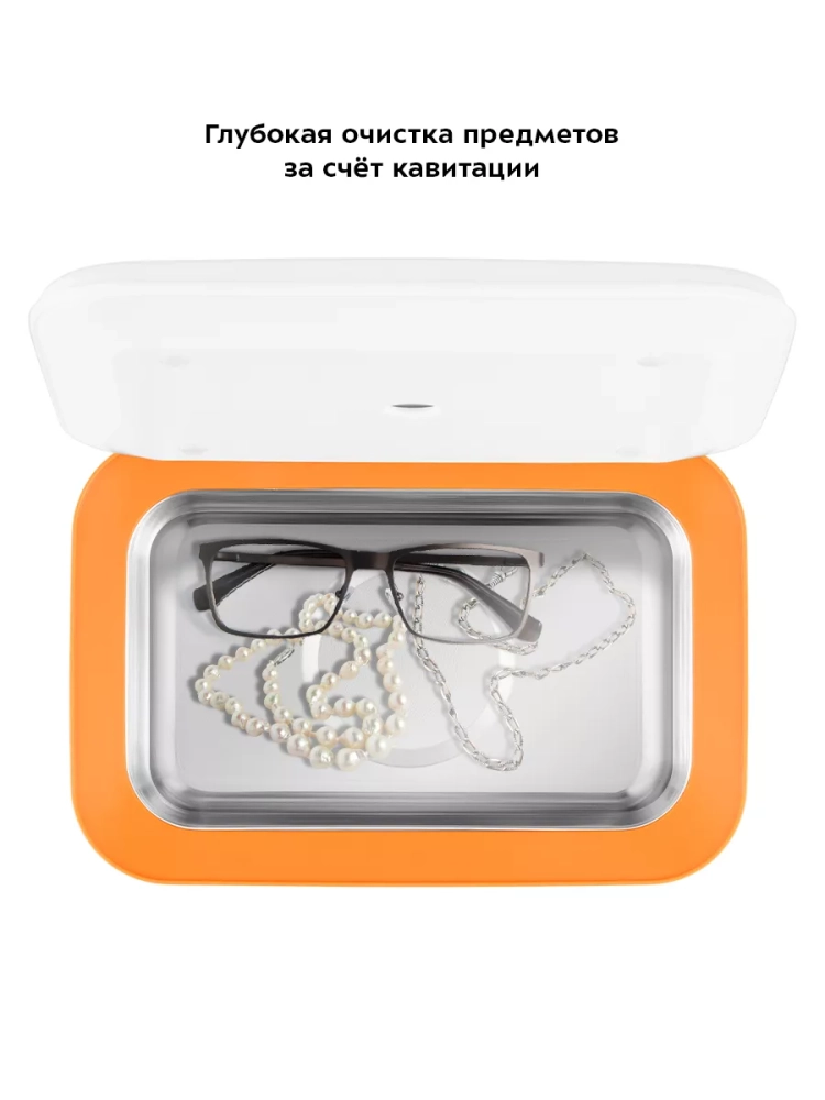 Корпус прибора сделан из пластика, а резервуар, в который помещаются предметы для очистки, — из нержавеющей стали.