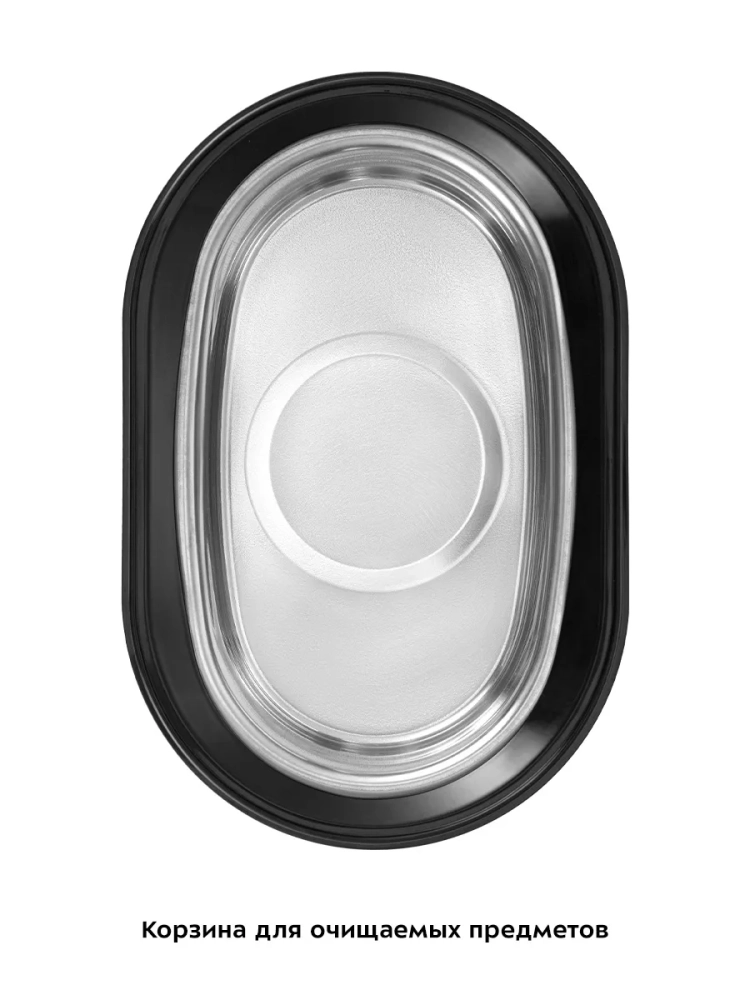 Корпус прибора сделан из пластика, а резервуар, в который помещаются предметы для очистки, — из нержавеющей стали. Прозрачная крышка позволит наблюдать за процессом очистки.
