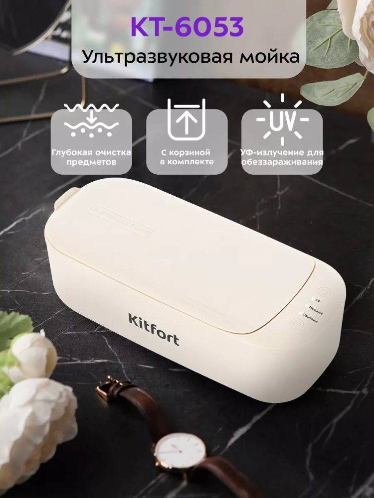 Ультразвуковая мойка Kitfort КТ-6053 поможет эффективно очистить и продезинфицировать небольшие изделия из металла, пластика и стекла. Ультразвуковая очистка — способ очистки поверхности твёрдых тел в жидкости, при котором в жидкость вводятся ультразвуковые колебания. Применение ультразвука значительно ускоряет процесс очистки и повышает ее качество. В качестве жидкости в ультразвуковой мойке можно использовать воду, а также чистящие или дезинфицирующие растворы.