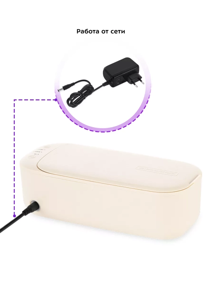 Корпус прибора сделан из пластика, а резервуар, в который помещаются предметы для очистки, — из нержавеющей стали. Прозрачная часть крышки позволит наблюдать за процессом очистки.