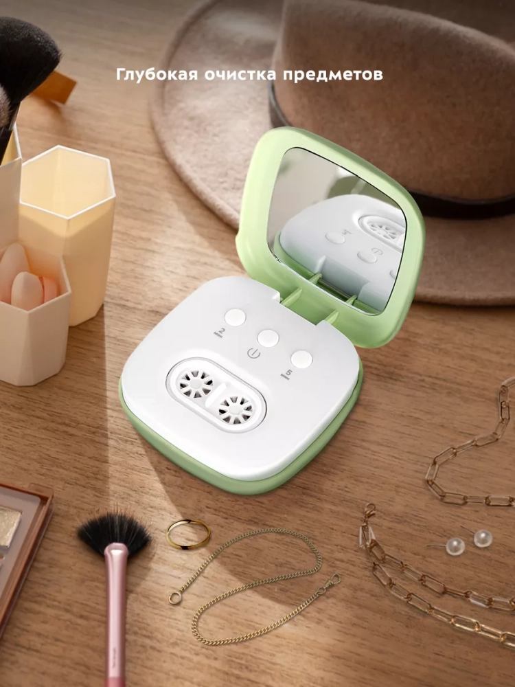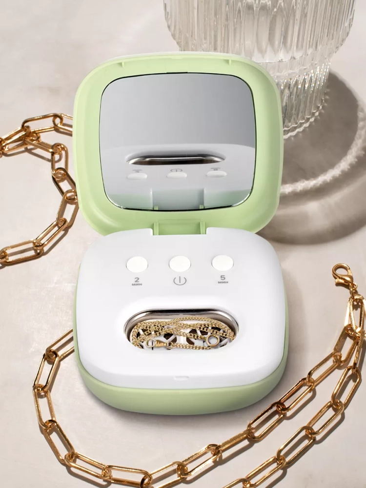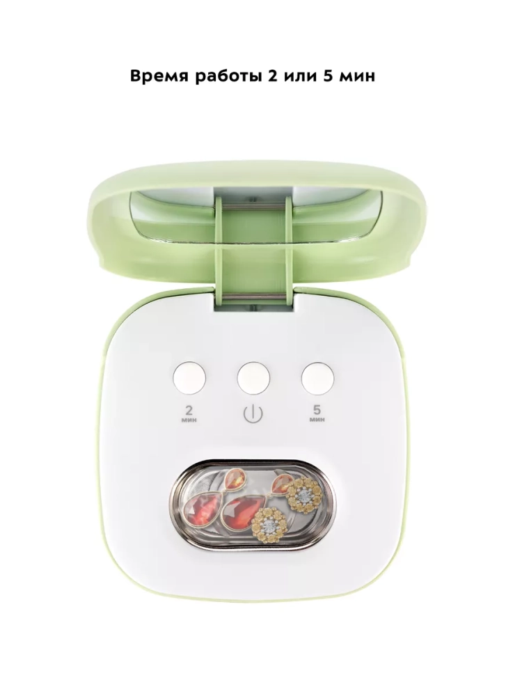 Корпус прибора сделан из пластика, а резервуар, в который помещаются линзы для очистки, — из нержавеющей стали. Благодаря небольшому размеру мойка не займет много места у вас в доме.