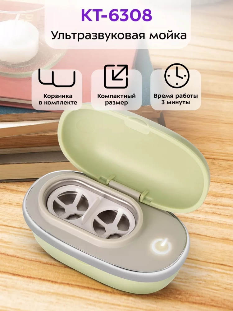 Ультразвуковая мойка Kitfort КТ-6308 поможет эффективно очистить и продезинфицировать контактные линзы. Ультразвуковая очистка — способ очистки поверхности твёрдых тел в жидкости, при котором в жидкость вводятся ультразвуковые колебания. Применение ультразвука обычно значительно ускоряет процесс очистки и повышает его качество. Для чистки контактных линз в качестве жидкости рекомендуется использовать специальный раствор для контактных линз.