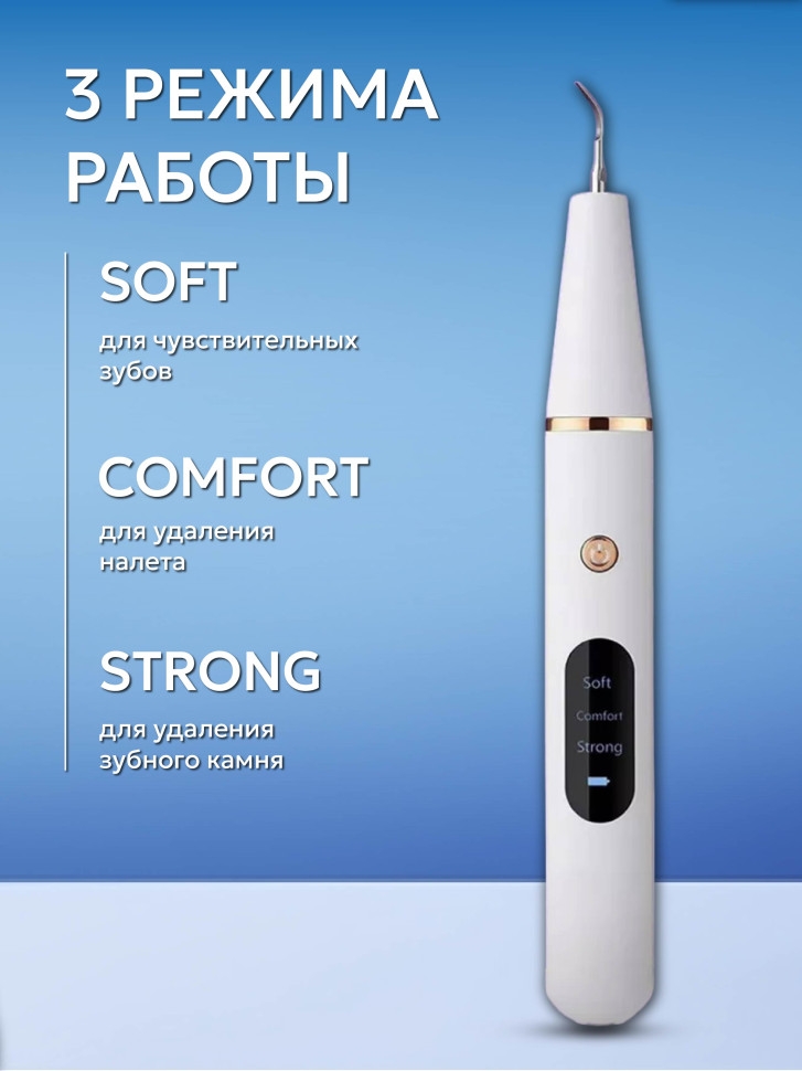 ВНИМАНИЕ! Скалер включается 2 секундным зажатием кнопки включения - загорается индикатор и подсветка. НЕ издает никаких звуков пока не прикоснется к поверхности зуба. Во время зарядки ирригатор не включается из соображений безопасности! Для начала работы сначала отсоедините кабель зарядки. Медицинский стационарный прибор для удаления зубного камня S401 специально создан для домашнего профессионального ухода за полостью рта и чистки. Ирригатор - это простое и безопасное устройство для ультразвуковой чистки, которое эффективно устраняет камень, налет и пятна от кофе и сигарет, работает за счет колебательных вибраций, ультразвуковые волны подают сигнал и определяют скопление налета, целенаправленно разрушают твердые тела, не создавая дискомфорта и бережно ухаживая за полостью. Прибор для ультразвуковой чистки отличается эргономичным дизайном, съемными сменными насадками и наконечниками с LED светодиодной подсветкой, которые помогают легче обнаружить проблемные участки. Аппарат бережно моет, очищает десны, борется с неприятным запахом изо рта, рекомендуется в качестве профилактики возникновения кариеса и будет отличным дополнением для набора косметики, которая поможет вам улучшить ваш внешний вид, красоту и здоровье и вы увидите результат в зеркале уже через пару применений. Данный настольный стоматологический набор для ванной можно комбинировать с электрическими и монопучковыми щетками любой жесткости, ополаскиватель также для детского пользования, а также для пломб, брекетов коронок мостов виниров имплантатов, протезов и языка и других альтернатив.