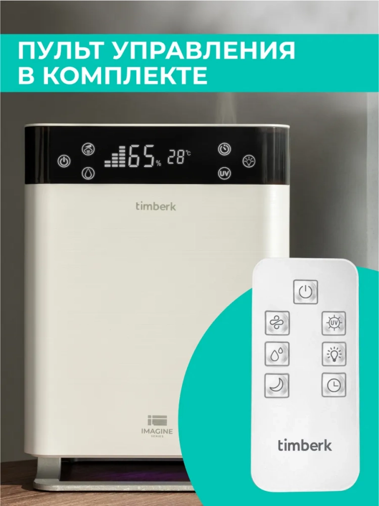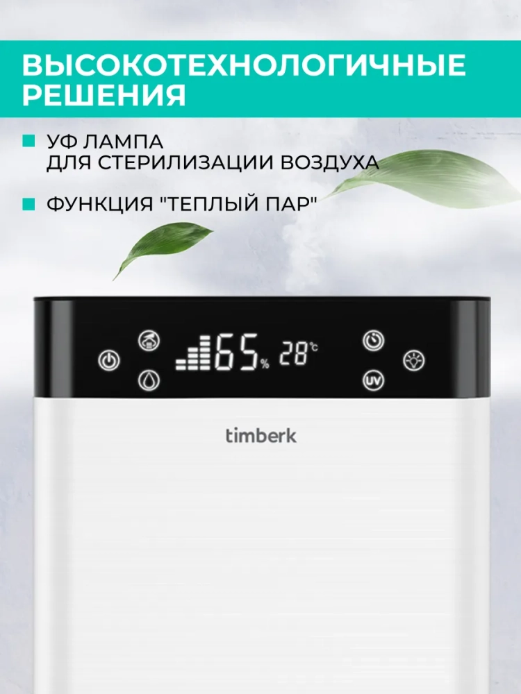 Прекрасным помощником в поддержании необходимого уровня влажности воздуха станет ультразвуковой увлажнитель воздуха T-HU6-A19E-W. Принцип работы этого прибора основан на превращении воды в пар при помощи ультразвуковой мембраны. Увлажнители Timberk представлены в множестве решений с точки зрения дизайна и функциональных возможностей.