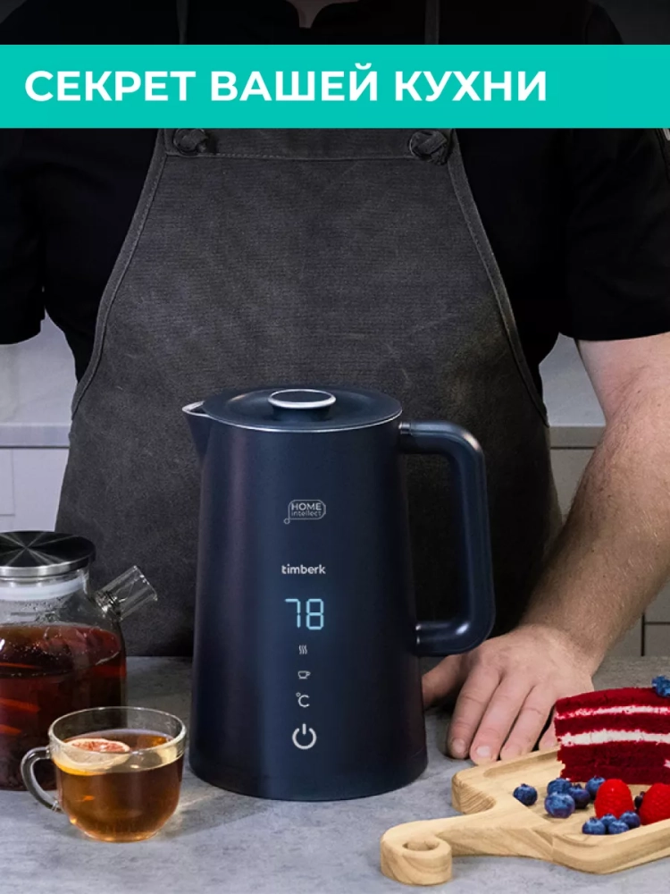 Умный электрический чайник Timberk T-EK21S104WF упростит процесс приготовления напитков. Чайник оснащен дистанционным управлением, с помощью которого можно использовать голосовые команды, настраивать расписание и регулировать температуру нагрева с шагом в 1°. Функция поддержания температуры воды до 12 часов сохранит вкус и состав воды. Двойные стенки делают внешнюю поверхность чайника безопасной для прикосновения. Чайник оснащён системой защиты от сухого кипячения, если в чайнике нет или мало воды, он автоматически отключится.