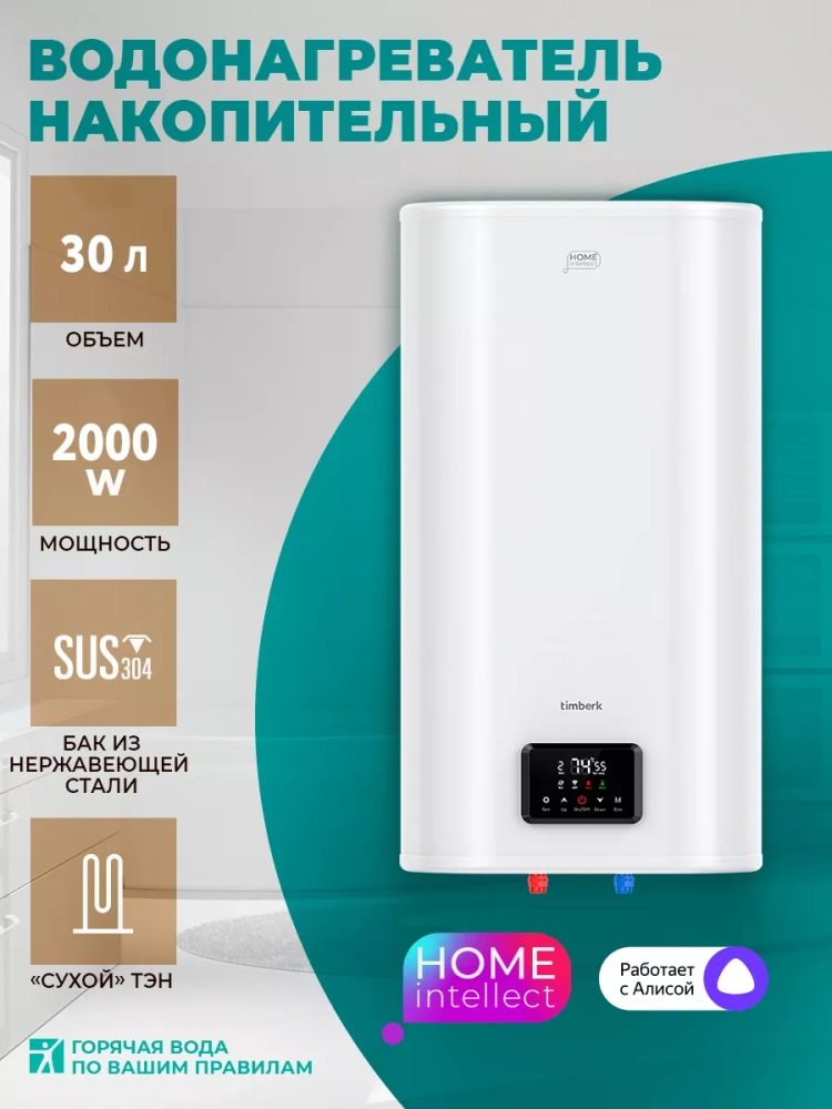 Home Intellect – это направление в развитии умного дома Timberk. Новое поколение водонагревателей из этой серии позволяет еще более комфортно и легко управлять горячей водой со своего смартфона и экономить на электроэнергии. Горячая вода – в любое время и в любом месте с умным домом Home Intellect.